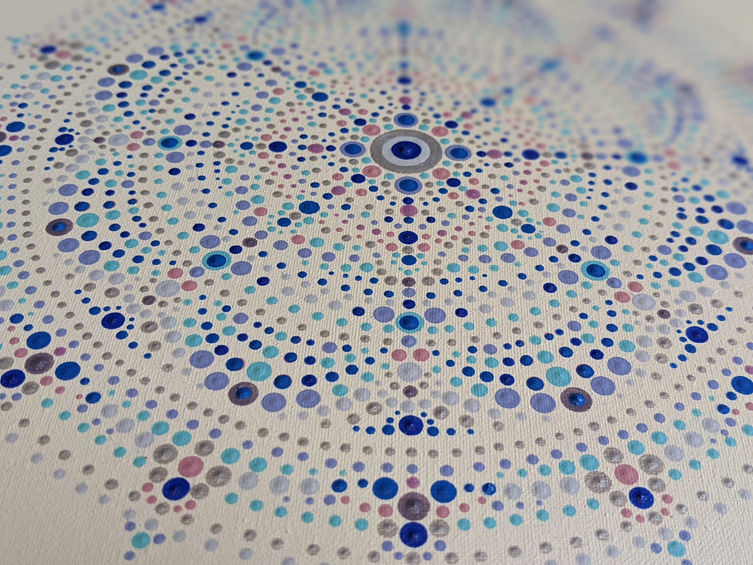 Interestingly, three of them balance each other to maintain a harmony in a space. I could feel that while painting these mandalas together. I usually do not work more two works at the same time but this time, I worked simultaneously simply because this allowed me to work in the family energy.