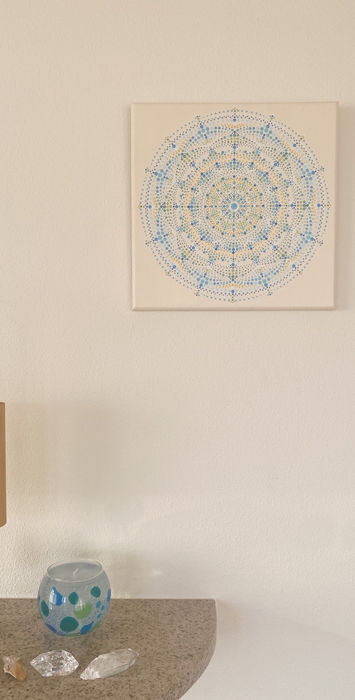 I have been offering to paint Soul Mandala on a commission basis. This mandala reflects your inner Self and helps to support your energy field. Each piece is unique and customised to your needs.